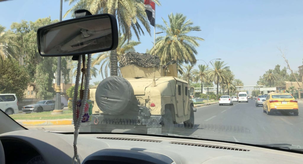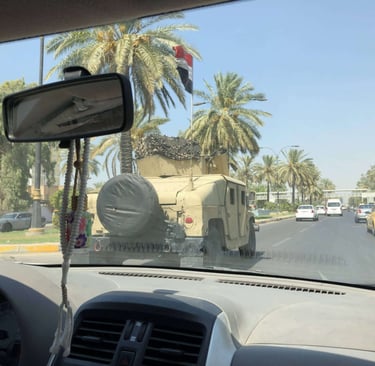 I finally landed and my passport was stamped in Baghdad for the first time in over a decade, my enjoyment of this moment was cut short by the border security officer yelling “YALLA YALLA NEXT HABIBI.” I exited the airport and had been told there would be someone waiting for me. The first thing I saw was a convoy of seven black American bulletproof SUVs with about a dozen marines surrounding the airport entrance. As I was standing there trying to comprehend the situation, one marine asked me to move aside as there were US officials walking right behind me. This was two days after the first Israeli airstrike against Iraq in over 38 years, and the US Embassy in Baghdad was on standby for a potential retaliation attack from Iran and Iranian-backed groups who control the neighborhoods surrounding the US Embassy. Between all the foreign planes, soldiers, and flags, it felt like my country was still stuck in 2003.